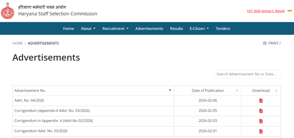 | Haryana Staff Selection Commission Official Website |